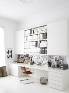 איך זה היה נראה אם הקלסרים לא היו בצבעים זהים? Home office of Justine Hugh-Jones via Est Magazine