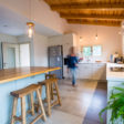 מול דלת הכניסה, היכן שבעבר הייתה פינת האוכל, כעת נישה עם ספסל ישיבה ואחסון. שמרנו על גב הקיר המקורי מעץ שבנה הסבא. .